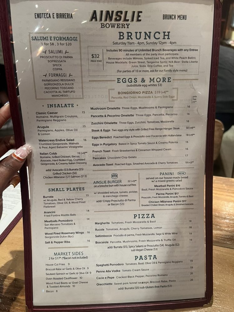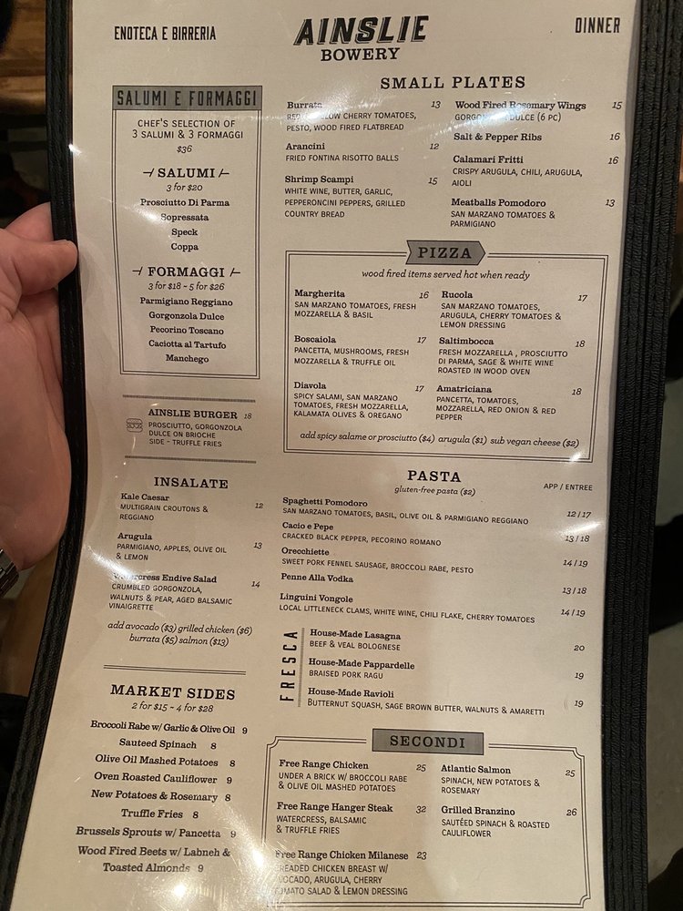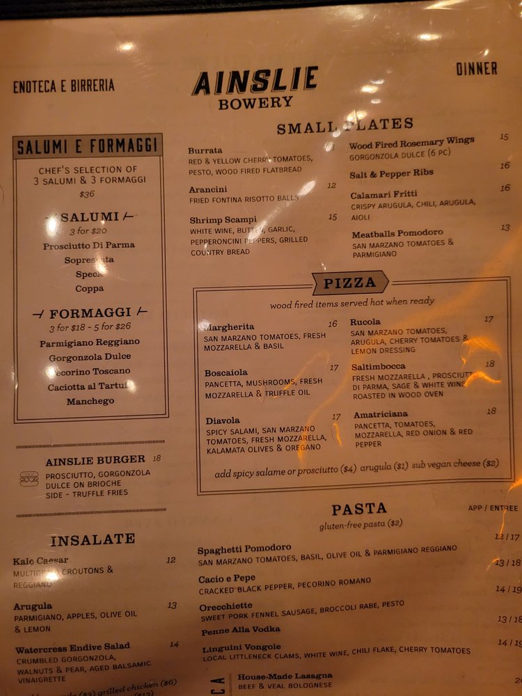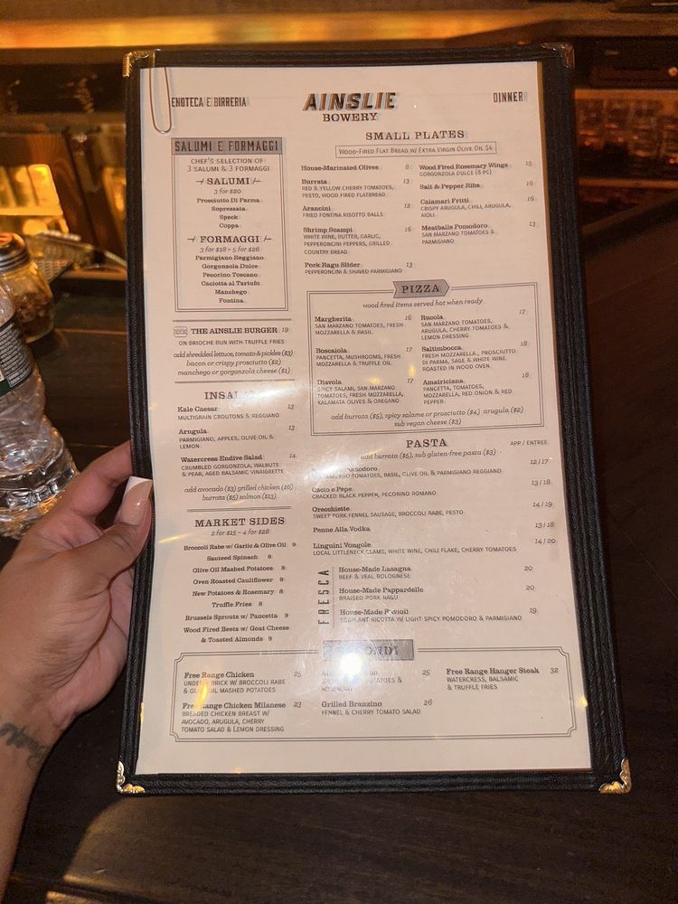 What sets Ainslie Bowery apart is its diverse menu offerings, from delectable Salumi e Formaggi choices to mouth-watering small plates and burgers like the Wood Fired Flat Bread and Shrimp Scampi. The Insalate options, including the Classic Caesar and Italian Cobb Salad, are a perfect blend of freshness and flavor.